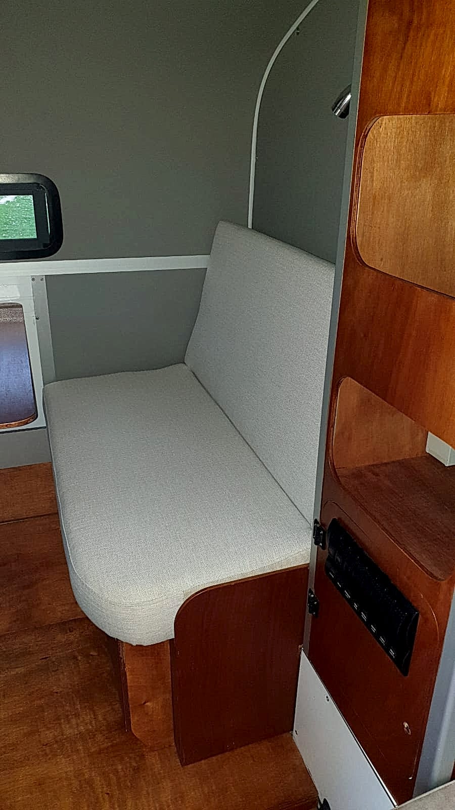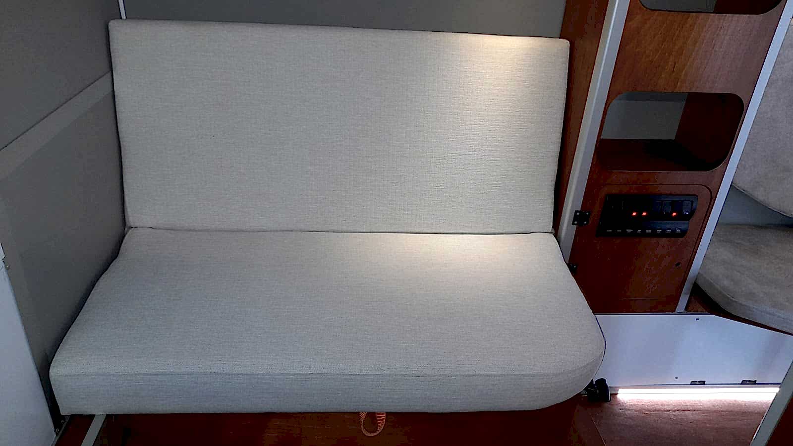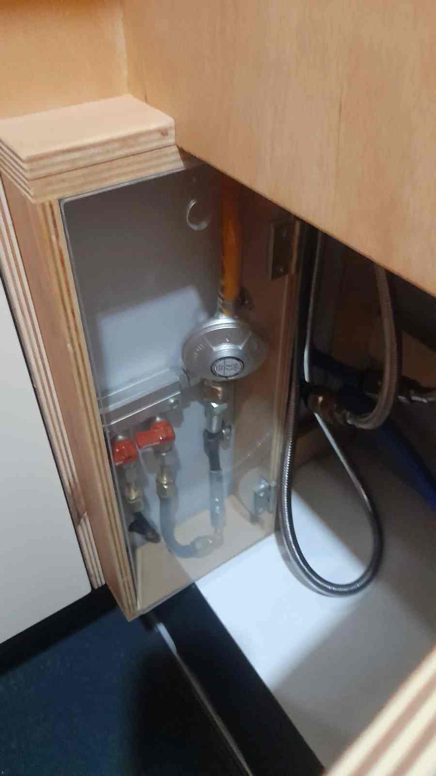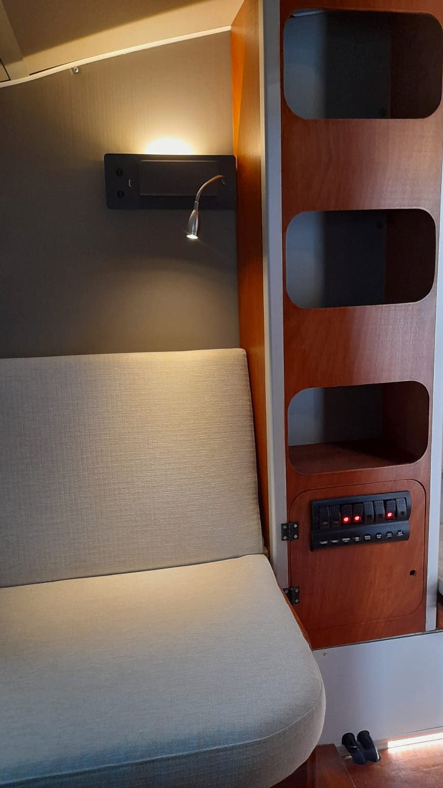 * 86 cm mutfak modülü / 50 lt 12 v buzdolabı entegre / üst dolap / 70 cm dışarı açılır mutfak havalandırma camı / 1 adet kaşık çekmecesi mutfakta 3 adet 220v priz.