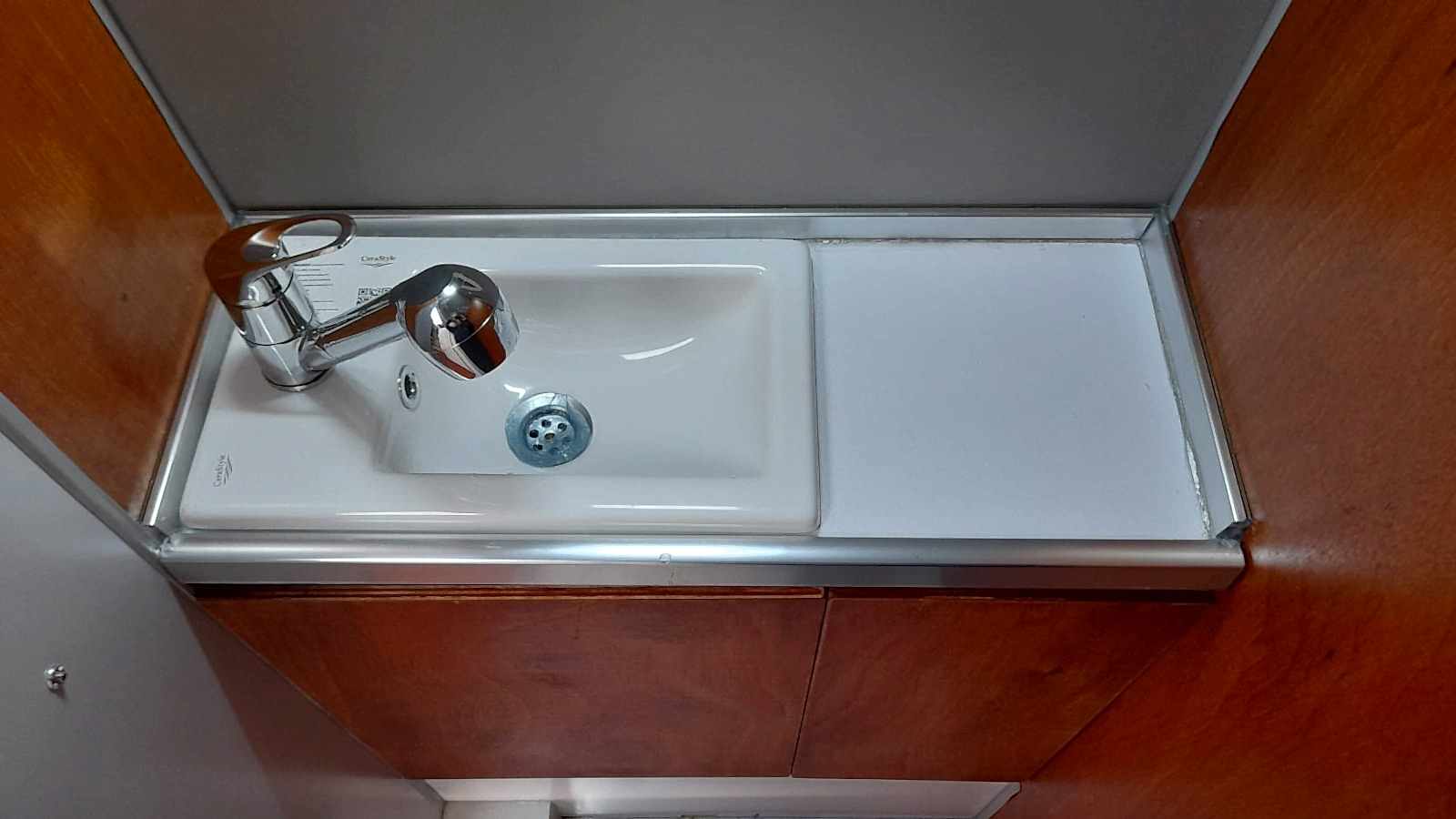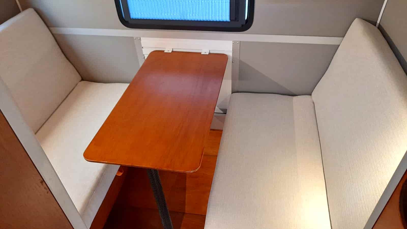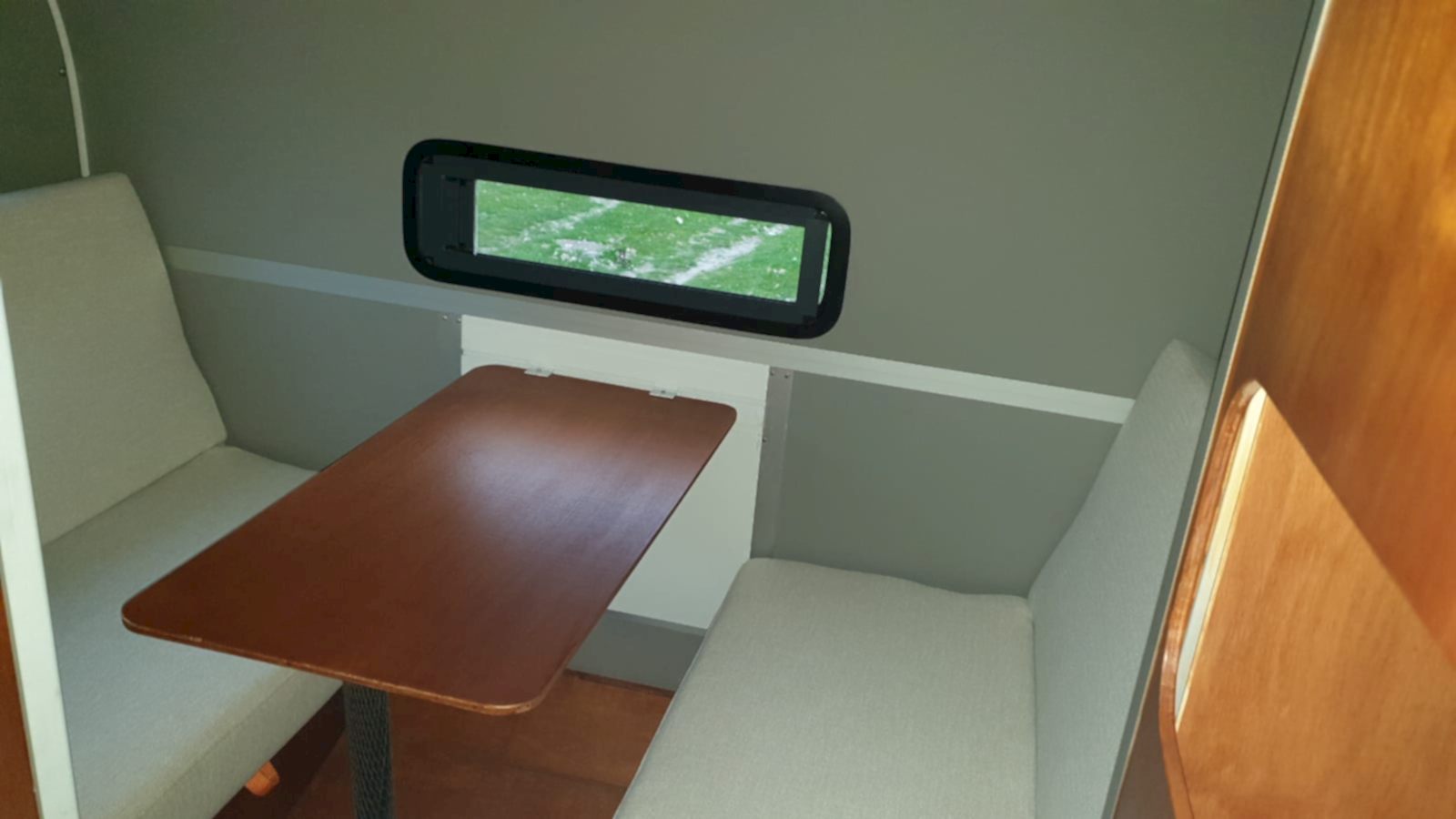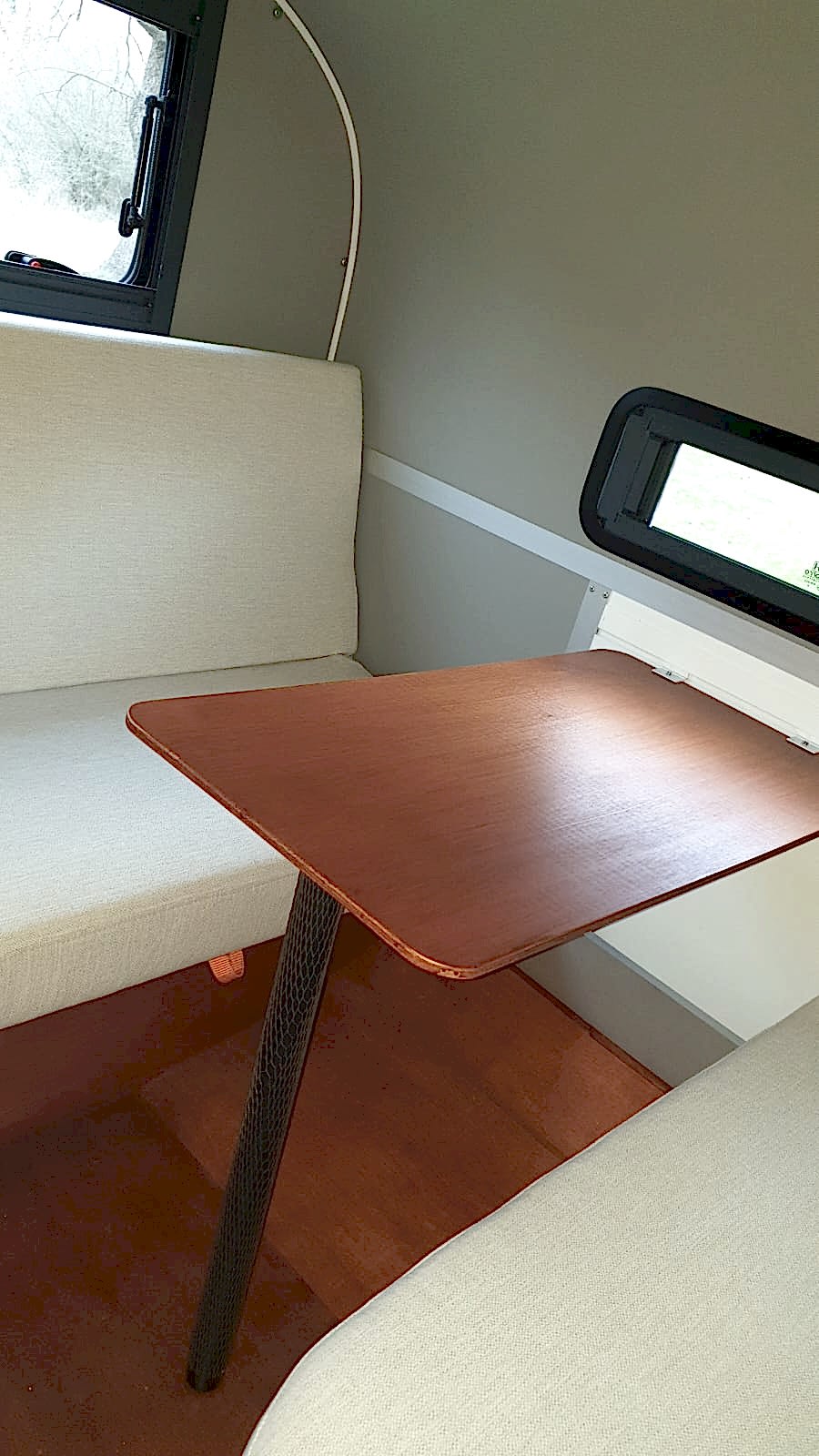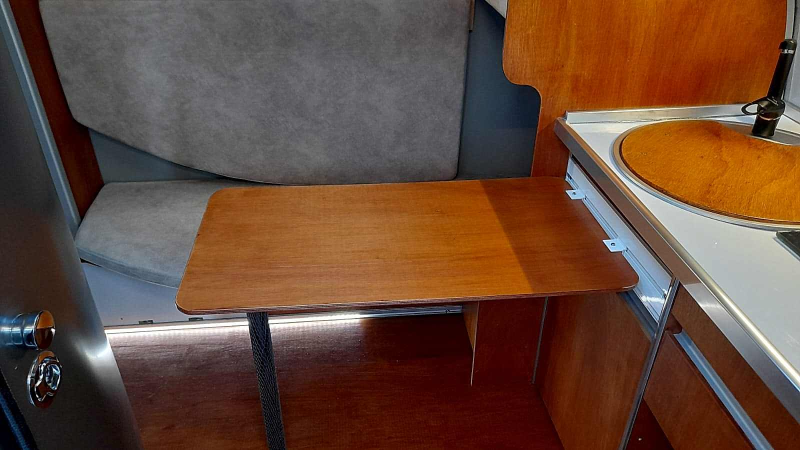 * 50x100 cm yemek masası -okume marin kontraplak - pratik bağlantılı - katlanabilir ayaklı - karavan arka duvarında yada dış yan cephelerde 3 farklı yerde kullanılabilir.