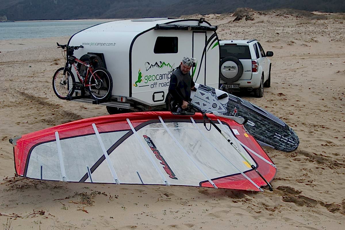Windsurf , Kitesurf, Paragliding, Paramotor, Treking, Dağ bisikleti, Kayak, Scuba diving , Kano , Şişme bot yada kamp ekipmanları için gerekli ve yeterli ıslak ve kuru depolama alanlarına, pratik malzeme bağlama sistemlerine sahiptir. T KANALLI ALÜMİNYUM profillerden oluşan gövde üzerinde onlarca değişik malzemeyi kolaylıkla karavana bağlayabilir ve kullanım sonrası kolaylıkla sökebilirsiniz.