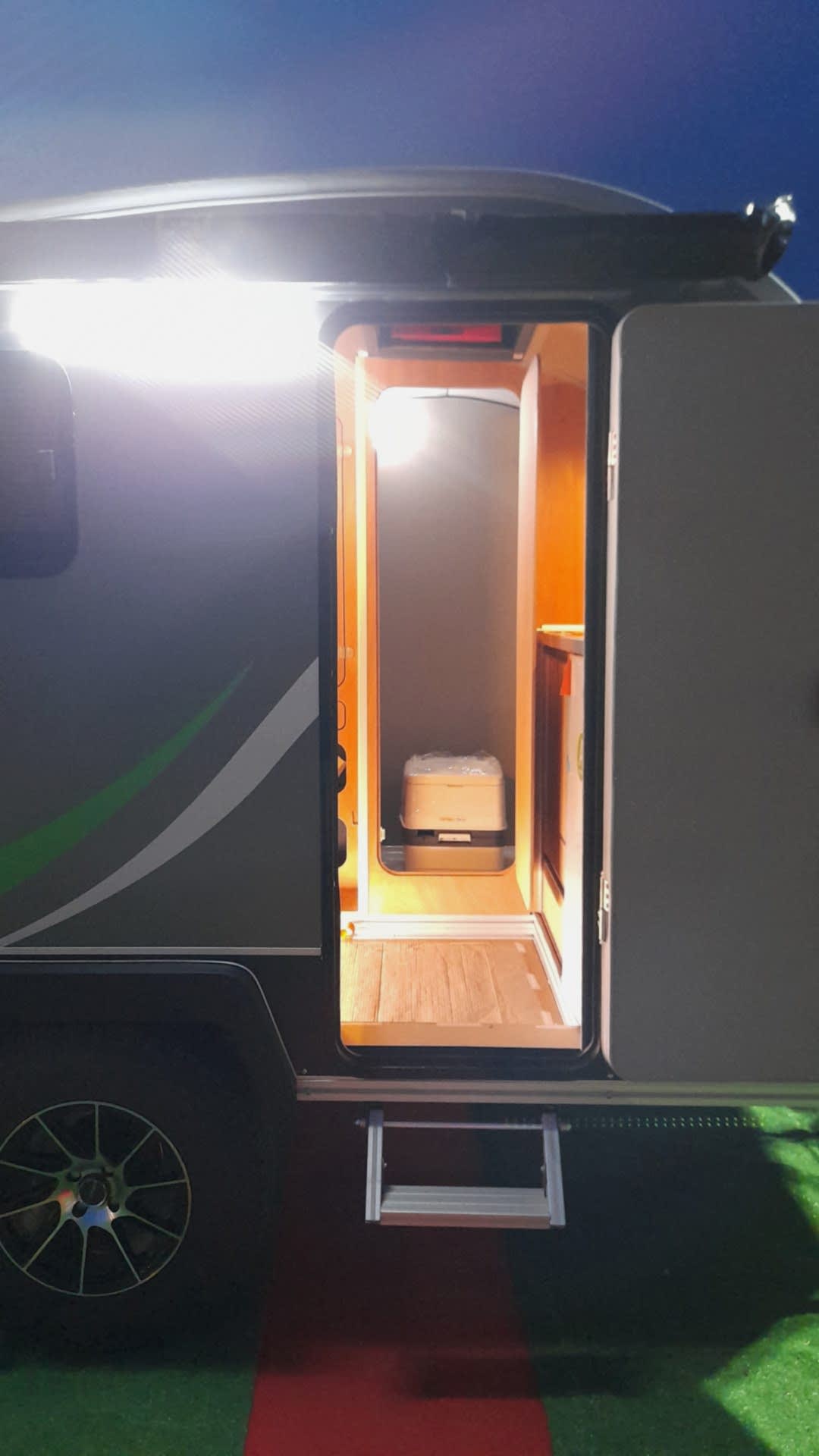 - Kompakt tasarımı sayesinde dışardan bakılınca küçük içine girince yeterli hacimdedir. 190 cm ulaşan iç yüksekliği ile içinde ayakta durabilmek için opentop açılan tavan sistemlerine ihtiyaç duymazsınız. Bu nedenle izolasyon değerini hiçbir şekilde kaybetmez. Kış kamplarında içerde ısıtıcı kullanmadan bile uyuyabilirsiniz.